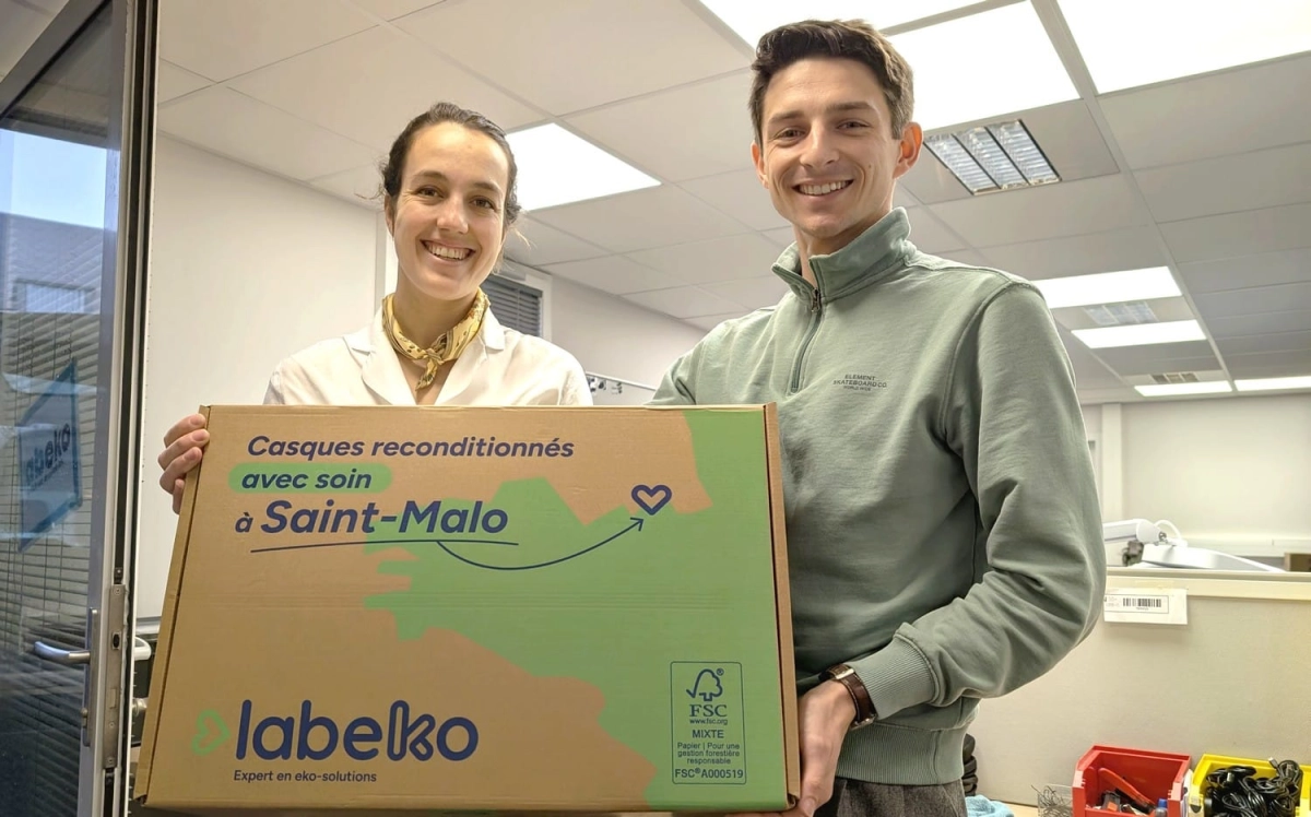 « Nous réparons un casque pour 50% de sa valeur », poursuit Paul Hignard. L’équipe de 17 salariés occupe, depuis septembre 2024, environ 400 m² des locaux de la pépinière d’entreprises Odyssée à l’entrée de Saint-Malo. Chaque grand compte – plus d’une centaine parmi les plus belles entreprises de France (Kering, L’Oréal, BPO, Caisse d’Epargne, Crédit Agricole, etc.)- livre ses cartons de casques défectueux. A réception, Labeko se charge de l’inventaire. « Sur la trentaine de modèles pris en charge, 75% sont réparables. » Les autres, considérés comme des Déchets d’équipements électriques et électroniques (DEEE), sont traités par des Eco-organismes agréés. « Nous gérons toute la logistique y compris celle liée aux déchets. »